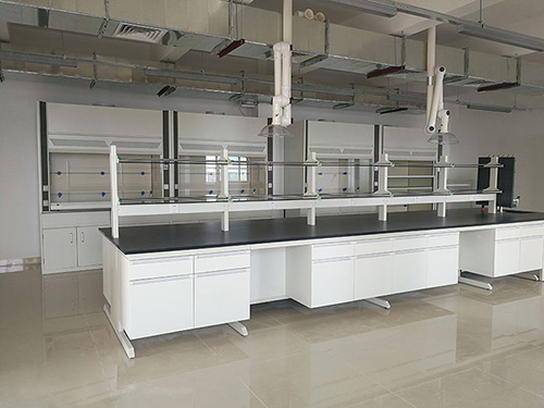 臺面:采用實驗室專用耐酸堿實芯理化板,臺面底部做有防水槽,水池臺上面做100mm高檔水板,結構堅固致密,能抗強沖擊,耐強酸堿更具有良好的承重性能。